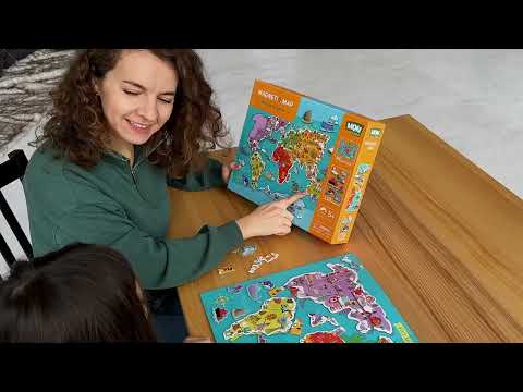 Puzzle magnetic - Harta lumii (118 piese) este un joc interactiv si educativ care ofera copiilor o experienta captivanta de a descoperi planeta noastra intr-un mod distractiv.